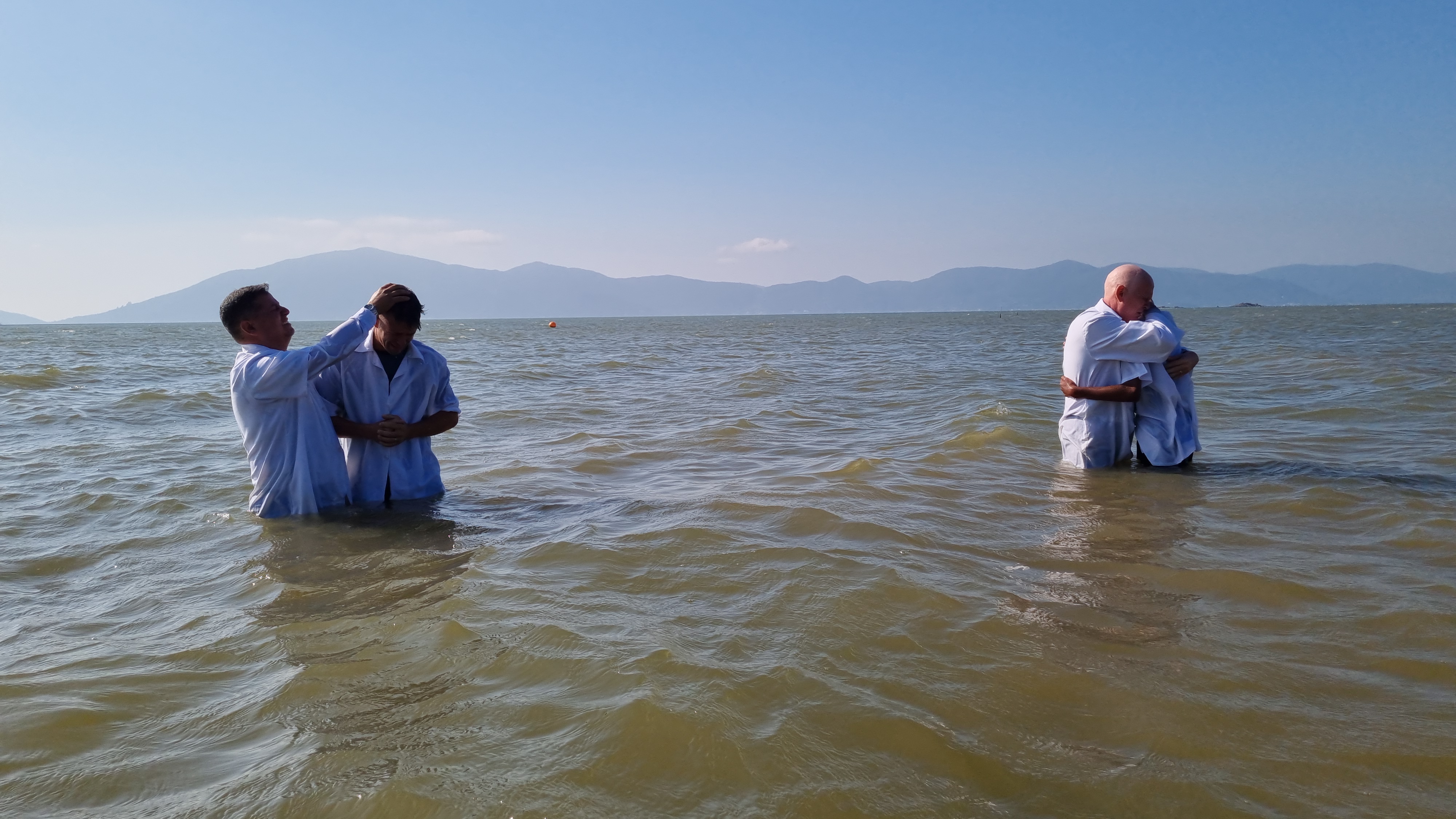 Após a cerimônia, que foi realizada pelos Presbíteros Renê Loch e Ulisses Guimarães, os novos irmãos em Cristo foram calorosamente recebidos nas areias da praia pela igreja que estava presente ali.